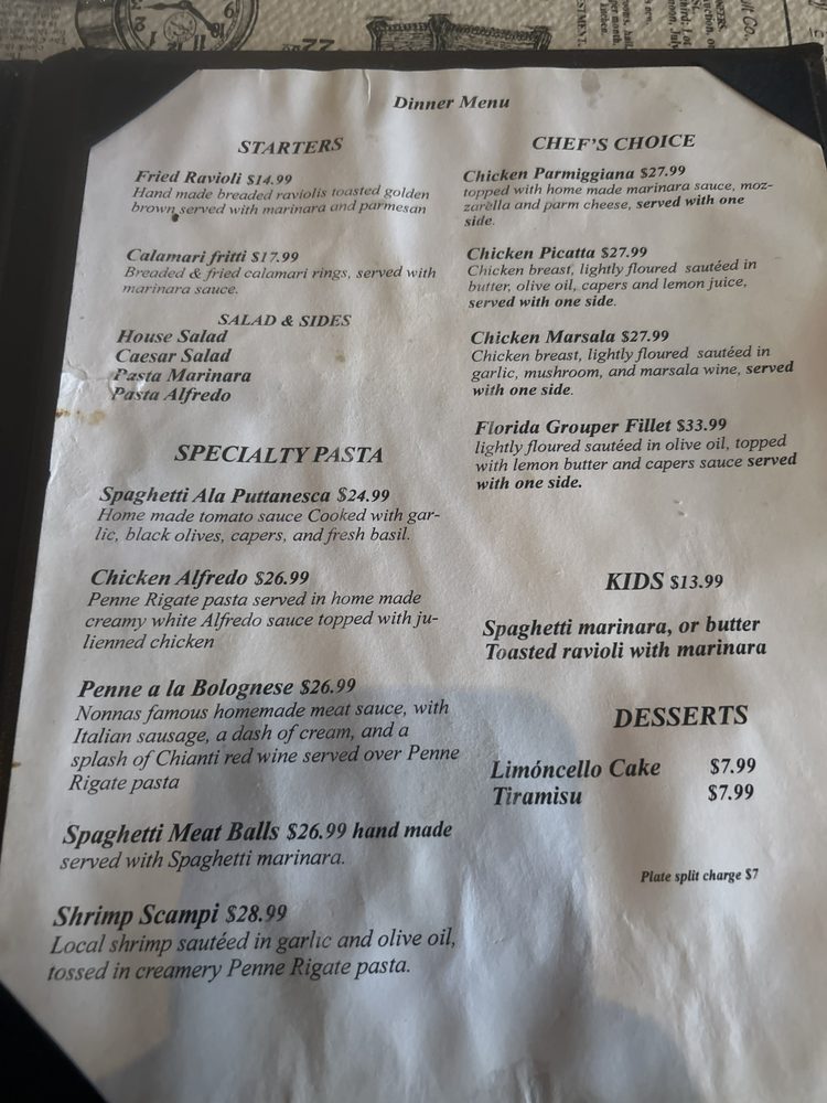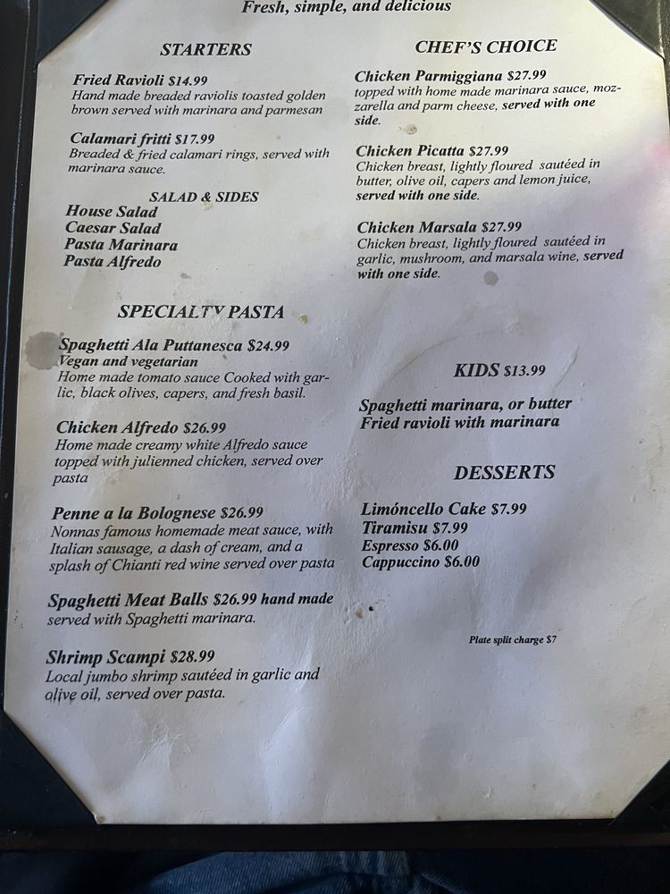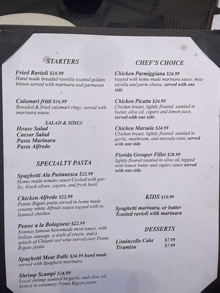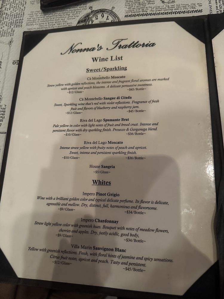 Nonna's Trattoria, located in St. Augustine, FL, is a must-visit for Italian cuisine enthusiasts. With a variety of vegan options and limited vegetarian choices, this restaurant caters to a diverse range of dietary preferences. The ambiance is described as cozy and romantic, perfect for a quaint Italian dinner. Customers raved about the excellent service, from attentive waitstaff to personalized recommendations. The fettuccine alfredo and chicken parmigiana are standout dishes, accompanied by a nice selection of wines. The small and charming setting adds to the overall dining experience, making it a top choice for locals and tourists alike. Don't miss out on the chance to savor authentic Italian flavors at Nonna's Trattoria.